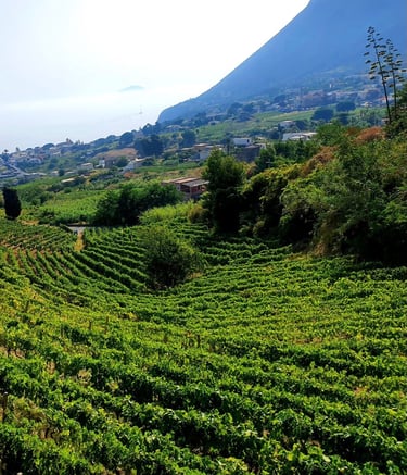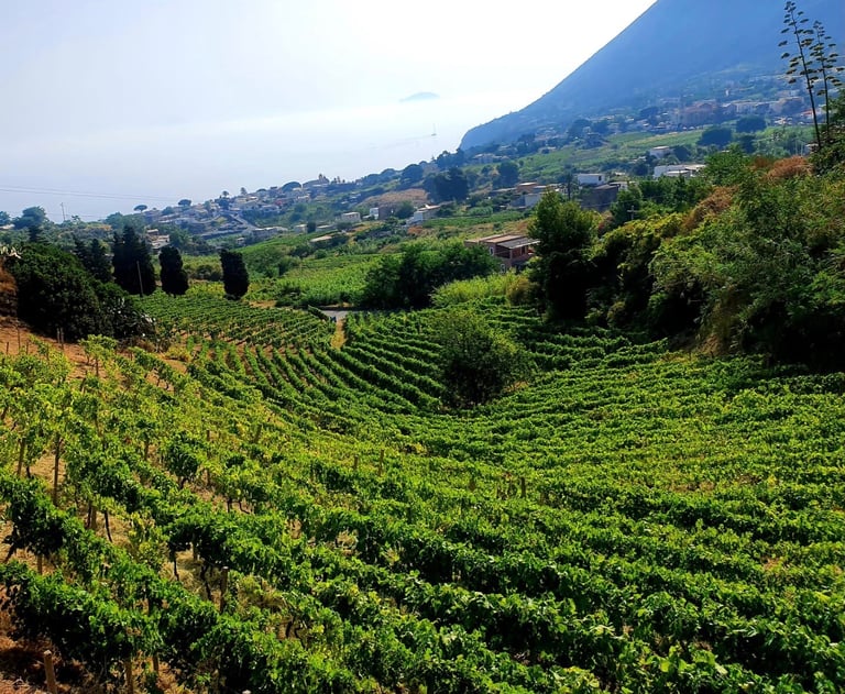 Two-thirds of the twin mountains that make up the island are part of the Monte Fossa delle Felci nature reserve, where no cultivation is permitted. The slopes are steep from the shore, so our land is 250 metres above sea level.